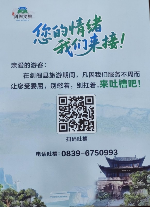 为方便游客提出意见,剑阁县在全县范围内设置了38个“吐槽码”点位,覆盖主要景区、酒店和餐饮街区。游客通过扫码即可反映遇到的问题。建议内容涉及景区管理、交通疏导、餐饮服务等多个方面,为管理部门改进服务提供了明确方向。